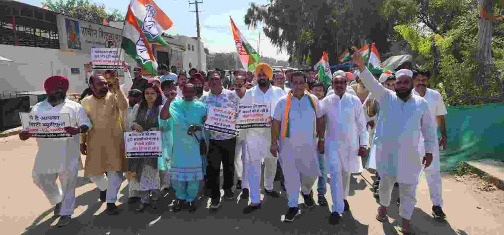 CHANDIGARH, 3 OCTOBER: शहर के मनीमाजरा क्षेत्र में टूटी और बदहाल सड़कों को लेकर आज कांग्रेस ने जिला अध्यक्ष सुरजीत ढिल्लों एवं ब्लॉक अध्यक्ष संजीव गाबा की अगुवाई में भाजपा सरकार एवं भाजपा शासित चंडीगढ़ नगर निगम के खिलाफ जोरदार प्रदर्शन कर नारेबाजी की। इस दौरान हाऊसिंग बोर्ड लाइट प्वाइंट से लेकर गोबिंदपुरा, ठाकुरद्वारा, मॉडर्न हाउसिंग कॉम्प्लैक्स तक रोष मार्च निकाला। इसमें बड़ी संख्या में कांग्रेस कार्यकर्ता एवं स्थानीय लोग शामिल हुए। इस रोष मार्च में चंडीगढ़ प्रदेश कांग्रेस अध्यक्ष एचएस लक्की ने विशेषतौर पर शिरकत की और नगर निगम को चेतावनी देते हुए कहा कि जल्द ही अगर सड़कों को ठीक नहीं किया गया तो कांग्रेस पार्टी मनीमाजरा में नगर निगम के दफ्तर का घेराव करेगी।