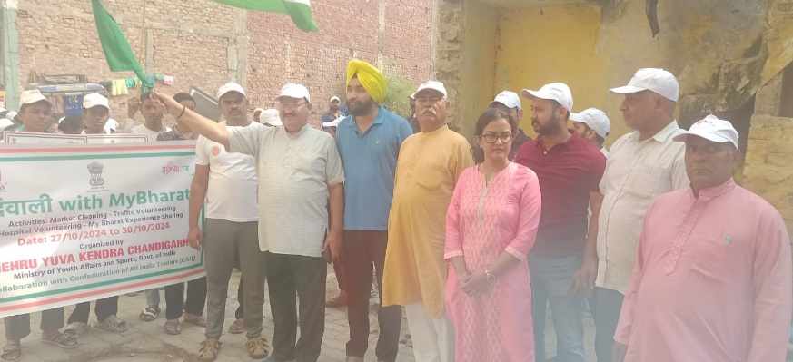CHANDIGARH, 28 OCTOBER: कॉन्फेडरेशनऑफ ऑल इंडिया ट्रेडर्स (CAIT) और भारत सरकार के युवा एवं खेल मंत्रालय के सहयोग से Diwali with my Bharat के स्लोगन के तहत जनता को प्रेरित करने के लिए 27 अक्तूबर से 30 अक्तूबर तक देश में 500 स्थानों पर जागरूकता कार्यक्रम किए जा रहे हैं। चंडीगढ़ ट्राइसिटी भी इसमें शामिल है। इस कार्यक्रम के अंतर्गत मुख्यतः मार्केट की सफाई, अस्पताल में मरीजों से मिलकर उनकी देखभाल, ट्रैफिक पुलिस के सहयोग से ट्रैफिक को कंट्रोल करने जैसी गतविधियां आयोजित की जा रही हैं। चंडीगढ़ ट्राइसिटी में कॉन्फेडरेशनऑफ ऑल इंडिया ट्रेडर्स (CAIT) के राष्ट्रीय सचिव एवं चंडीगढ़ चैप्टर के अध्यक्ष हरीश गर्ग ने रविवार को हल्लोमाजरा में वायलंटियर्स को हरी झंडी दिखाकर इस जागरूकता अभियान की शुरूआत की।