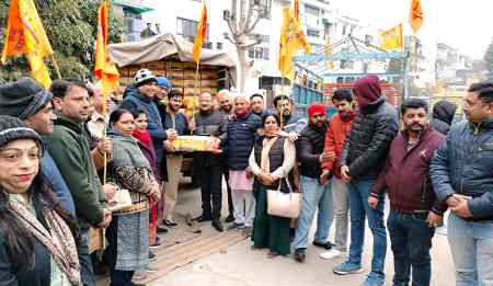 CHANDIGARH, 21 JANUARY: कल अयोध्या में प्रभु श्रीराम के मंदिर में होने वाले प्राण प्रतिष्ठा समारोह की खुशी में चंडीगढ़ प्रदेश भाजपा द्वारा बनवाए गए शुद्ध घी के 150 क्विंटल लड्डुओं का आज चंडीगढ़ के श्रद्धालुओं में वितरण शुरू किया गया। इस अभियान की शुरुआत सेक्टर-18 स्थित राधा कृष्ण मंदिर से चंडीगढ़ प्रदेश भाजपा अध्यक्ष जतिंदर मल्होत्रा ने की।