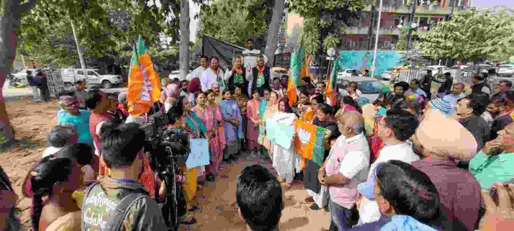 CHANDIGARH, 9 NOVEMBER: बिहार के मुख्यमंत्री नीतीश कुमार द्वारा महिलाओं के प्रति आपत्तिजनक टिप्पणी किए जाने तथा विधानसभा में अभद्र भाषा का इस्तेमाल करने के विरुद्ध चंडीगढ़ प्रदेश भाजपा ने आज प्रदेश अध्यक्ष जतिंदर मल्होत्रा के नेतृत्व में स्थानीय धनास कॉलोनी में विरोध प्रदर्शन किया व नीतीश कुमार का पुतला फूंका।