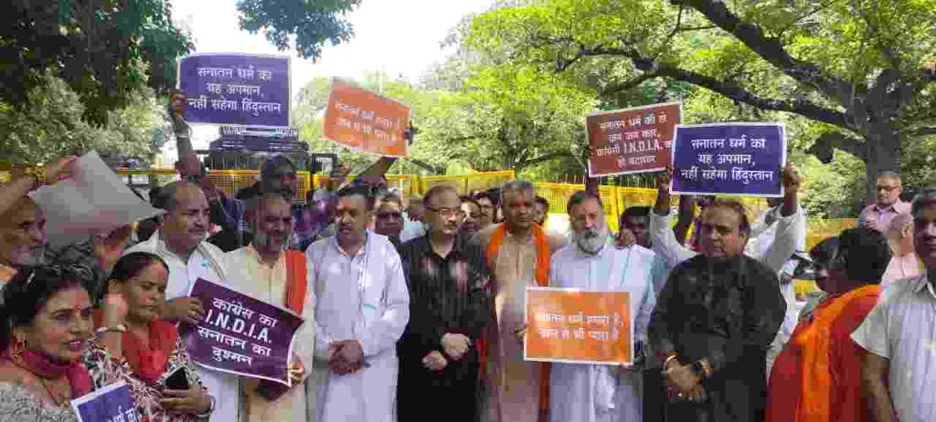 इस अवसर पर प्रदेश महामंत्री रामबीर ने भी कांग्रेस की आलोचना की और कहा कि भाजपा, कांग्रेस की लोगों को धर्म के नाम पर बांटकर वोट बटोरने की राजनीति सफल नहीं होने देगी। जल्द ही उदयनिधि स्टालिन के खिलाफ चंडीगढ़ प्रदेश भाजपा की तरफ से पुलिस में शिकायत भी दर्ज कराई जाएगी।