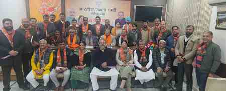 CHANDIGARH, 4 JANUARY: चंडीगढ़ 4 जनवरी 2024 चंडीगढ़ प्रदेश भारतीय जनता पार्टी के नवनियुक्त पदाधिकारियो की एक बैठक आज प्रदेश अध्यक्ष जतिंदर पाल मल्होत्रा की अध्यक्षता में सेक्टर-33 स्थित प्रदेश कार्यालय कमलम में आयोजित की गई, जिसमें पार्टी के प्रभारी एवं गुजरात के पूर्व मुख्यमंत्री विजय रुपाणी ने मुख्य अतिथि के रूप में हिस्सा लिया। वंदे मातरम से शुरू हुई इस बैठक में सभी नए पदाधिकारी का स्वागत किया गया तथा भविष्य के लिए शुभकामनाएं दी गई।