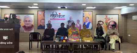CHANDIGARH, 19 JANUARY: भारतीय जनता पार्टी प्रदेश कार्यालय ‘कमलम’ में शक्ति वंदन अभियान की कार्यशाला का आयोजन अभियान की क्षेत्रीय प्रभारी लाजवंती झा की अध्यक्षता में आयोजित हुआ। इस अवसर पर भाजपा प्रदेश अध्यक्ष जतिंदर पाल मल्होत्रा ने मुख्य अतिथि के रूप में हिस्सा लिया। इस दौरान भाजपा की वरिष्ठ नेता पूर्व मेयर आशा जसवाल, प्रदेश उपाध्यक्ष कैलाश चन्द जैन, सुनीता धवन, एनजीओ सेल के प्रभारी प्रेम कौशिक, संयोजक अजय सिंगला, सहसंयोजक अजय कौशिक, महिला मोर्चा प्रदेश अध्यक्ष हीरा नेगी विशेष रूप से उपस्थित रहे। उनके अलावा बड़ी संख्या में महिलाएं व एनजीओ सेल के कार्यकर्ता उपस्थित थे।