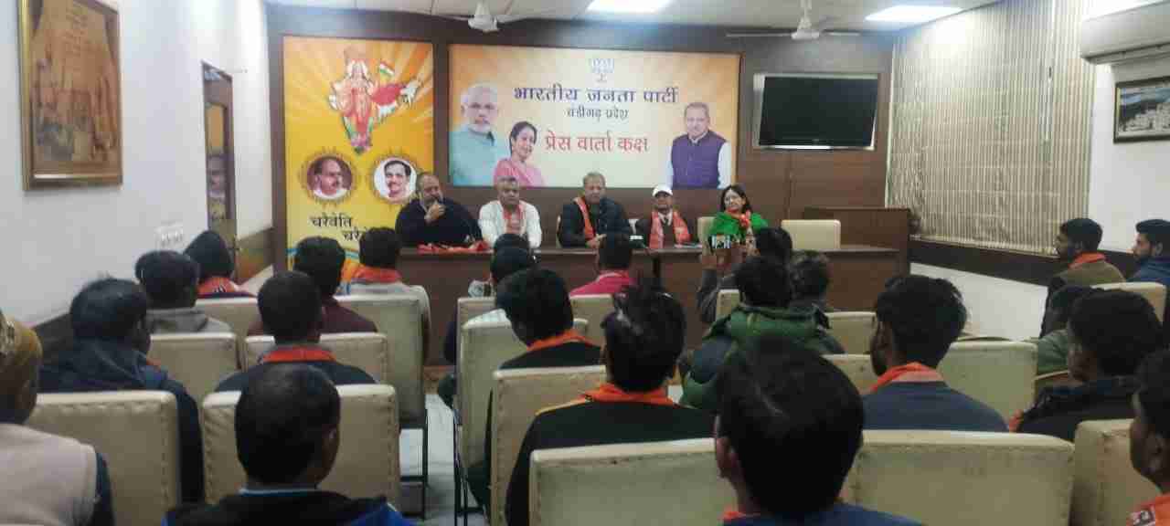 CHANDIGARH, 13 DECEMBER: प्रधानमंत्री नरेंद्र मोदी की नीतियों व भाजपा की कार्यशैली से प्रभावित होकर चंडीगढ़ प्रदेश कांग्रेस के वरिष्ठ नेता एवं जिला कांग्रेस सेवादल के पूर्व चेयरमैन महावीर शर्मा आज अपने साथियों सहित कांग्रेस को अलविदा कहकर भाजपा में शामिल हो गए। महावीर शर्मा और उनके साथियों को चंडीगढ़ प्रदेश भाजपा अध्यक्ष जतिंदर पाल मल्होत्रा ने पार्टी के पटके पहनाकर पार्टी में शामिल किया व उनका स्वागत किया।
